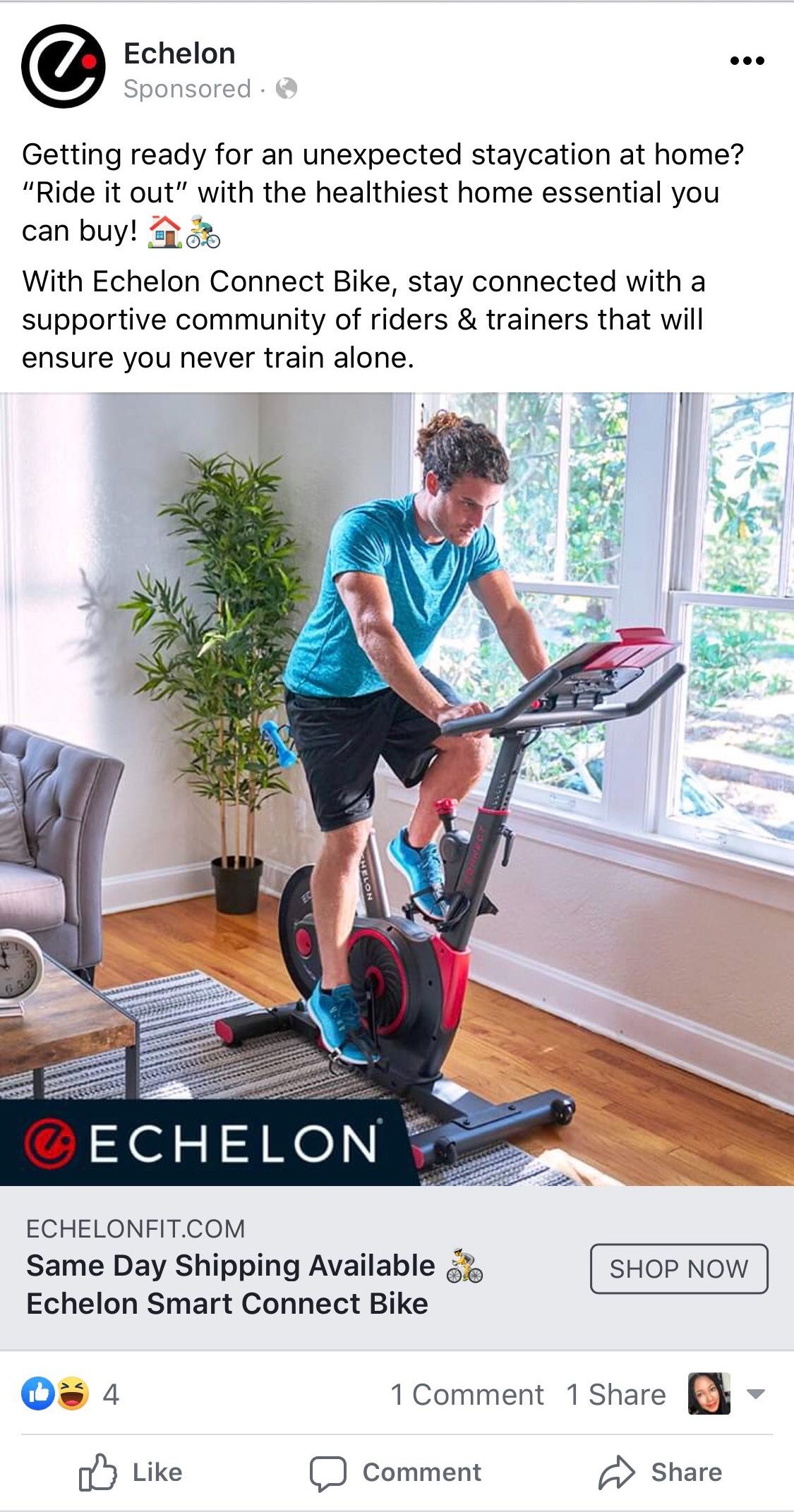 At-Home Fitness brand Echelon has been promoting special offers including same-day shipping, 0 Down, and free Apple iPad with purchase.