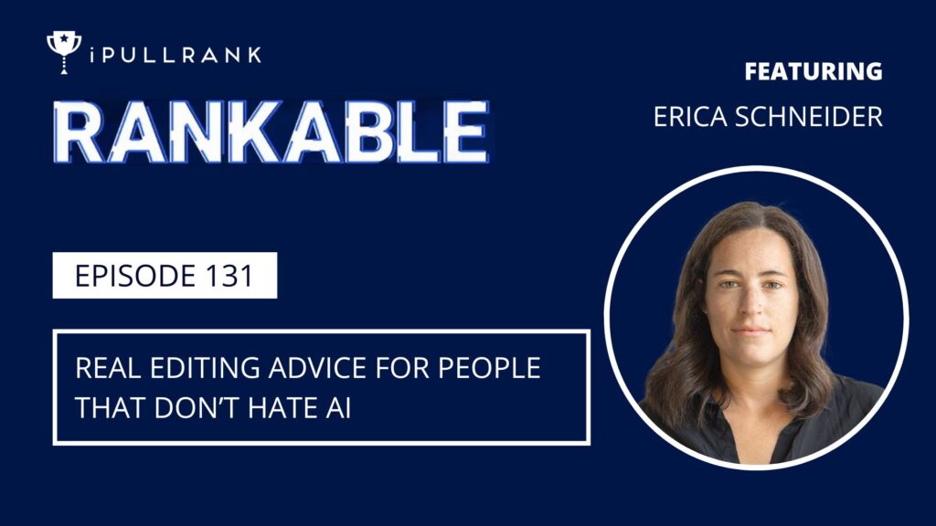 Garrett Sussman: Welcome back to another episode of the Rankable Podcast. I’m your host, Garrett Sussman of iPullRank, and I am hyped. We’ve got this out of nowhere, I mean, two years of hard, dedicated, social, like, hosting and talking and calling out bullshit and being real and having a platform and showing the power of your platform. Today, I’m excited to be joined by Erica Schneider. Now, she’s an editorial coach and trainer. doing the agency game, kind of doing the B2B marketing over seven plus years, content writing, editing, taught over hundreds of entrepreneurs and founders how to communicate strategically online. She’s produced some incredibly valuable guides and courses and writing for digital platforms that like stops the scroll and gets results. And she’s got a couple of courses going on, a new one that just came out, content editing. We have a link to that in the show notes. She has her company just recently started, really exciting, Power Your Platform, excited to dive into editing, content, AI, all that jazz. Erica, how are you doing today?