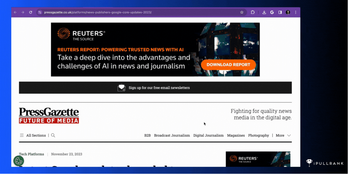 Once users are on-site, focus on providing the best possible reader experience. That means super-clean sites that aren’t bogged down by relentless advertising and video or newsletter popups. Not only does that build reader trust, but as Barry Adams often says: The best defense against the whims of Google’s algo updates is strong reader loyalty. Focus on what you can control: Providing a dynamic mix of content on your homepage, a strong recirculation campaign on article pages, and – obviously – whip-smart, helpful content.