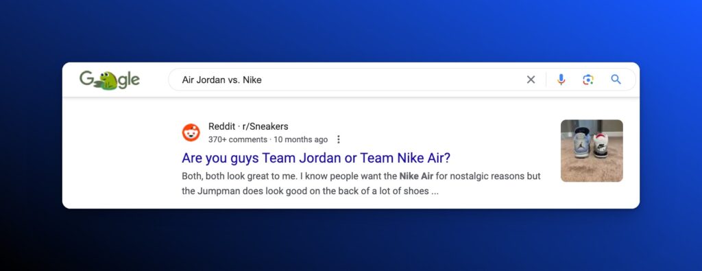 - Query Example: “Air Jordan vs. Nike”