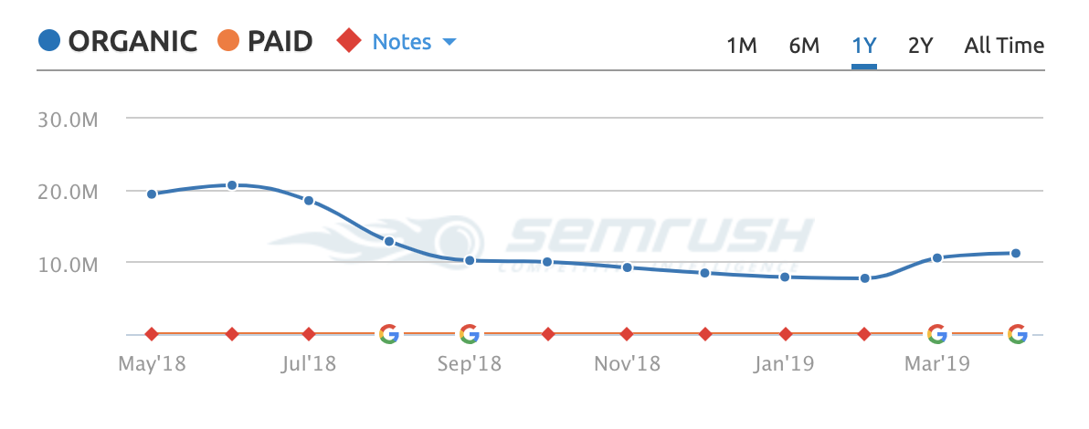 In the case of TheMortgageReports.com, they saw a decrease in August but were able to quickly recoup and even saw further improvement in the March 2019 update. At the same time, based on the SemRush data, it appears that their paid traffic increased as well.