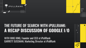 https://www.youtube.com/watch?v=2NYAgb5Jzh4 Mike King, Chief Relevance Engineer at iPullrank, and Garrett Sussman, Director of Marketing at iPullRank, discuss the implications of the recent Google I/O and