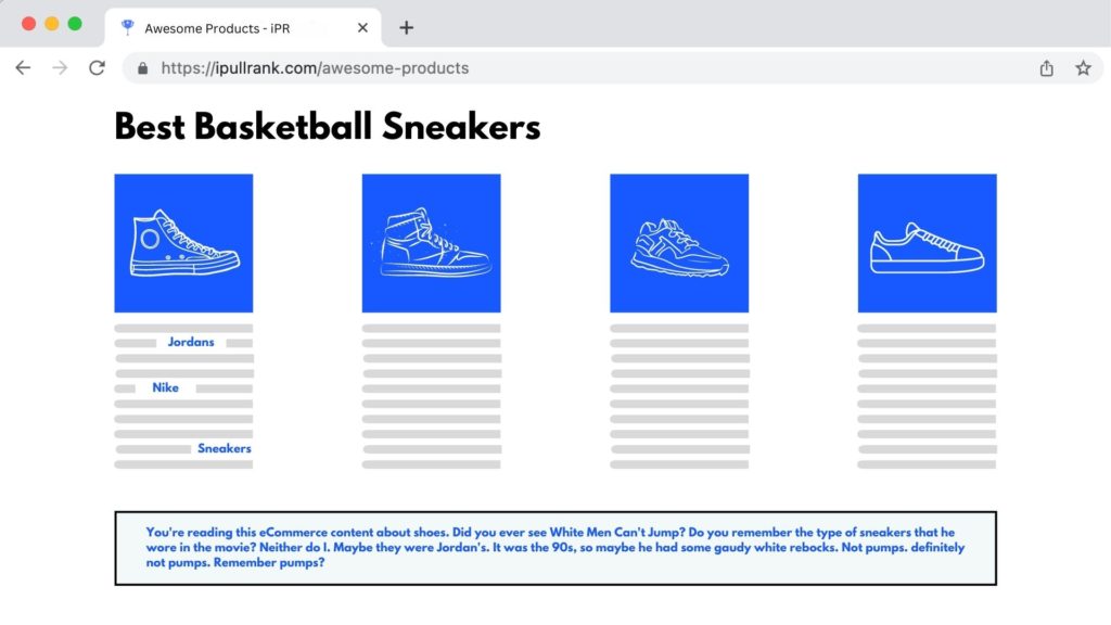 If you haven’t, it’s a very common tactic for both e-commerce sites and publishers. E-commerce sites create Product Listing Pages(PLPs) based on internal searches or n-grams present across the site and slap some Madlib copy on the bottom of the page. Similarly, publishers create Category or Tag pages that simply list articles with a description of the category at the top.