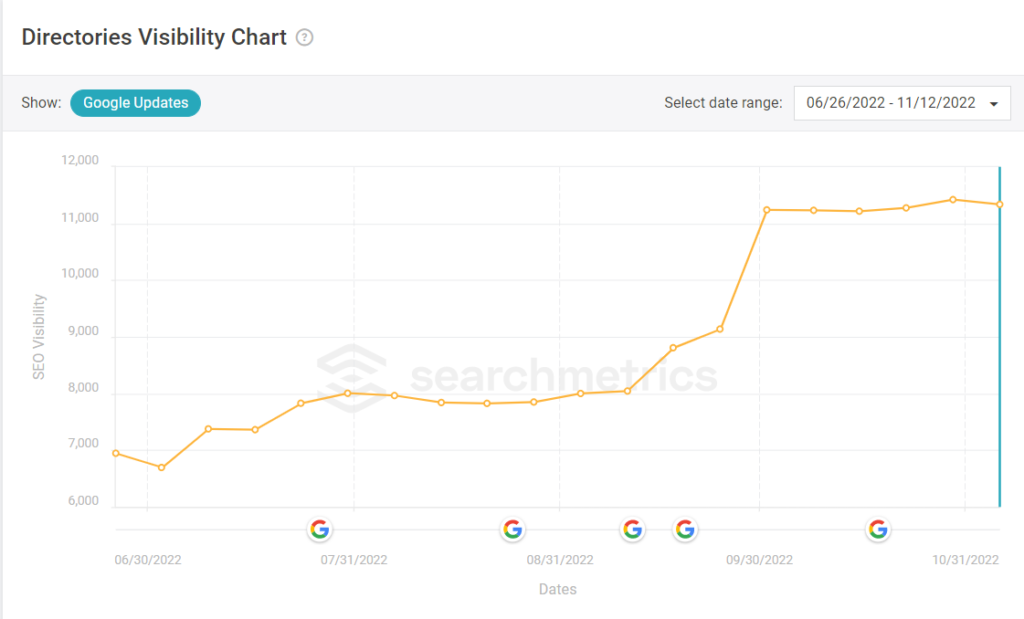 Oh, and for the record, here’s the visibility for that directory in which those pages I ran through the GPT-2 detector. The ~11k SEO visibility score represents about ⅓ of the site’s traffic and the site drives millions of visits monthly. For this subdirectory which features NLG content, it has actually seen some significant growth over the past few months and another small bump since the latest updates.