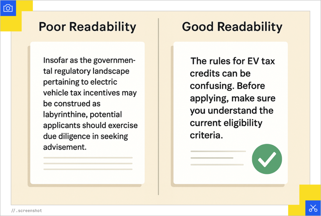 LLMs favor content that is easily parsed and understood. Complex sentence structures, jargon, and poor readability reduce the likelihood of a passage being used. Have a good user experience and readability on your page.