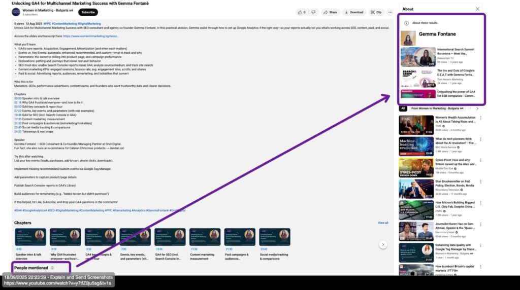 LLMs consistently cite YouTube videos (it’s the third most-cited source, according to data from the Visual Capitalist) and other multimodal content, and even within the YouTube search and video pages, there are numerous featured snippets that pull entity data, when that is appropriately highlighted within the title, description, captions, transcripts and other elements – so, doing this would pay off not only in terms of search visibility but also in terms of in-platform discoverability.