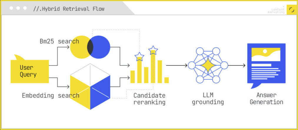 Hybrid retrieval combines both lexical and semantic search then re-rank the documents using methods like reciprocal rank fusion (RRF). However, 95% of SEO tools still only perform lexical analysis.