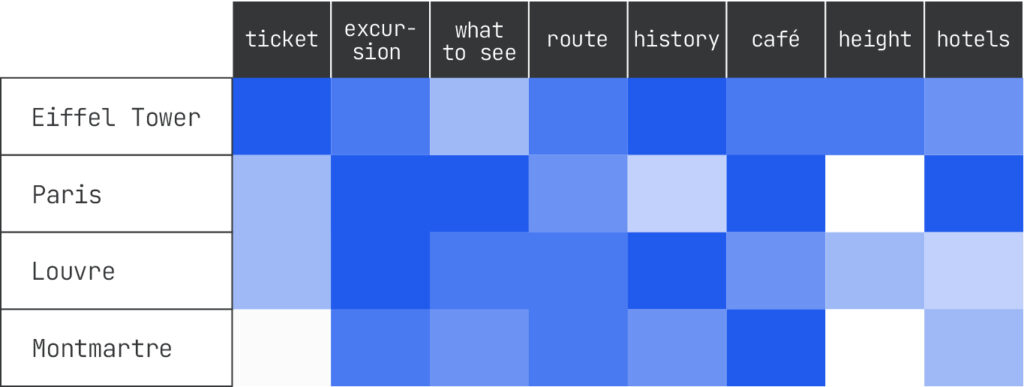 This is why entity attribution is critical. It tells you what the system understood, not just what the user typed. Building an entity–query co-occurrence matrix for your topics reveals which entities drive the most retrieval eligibility.