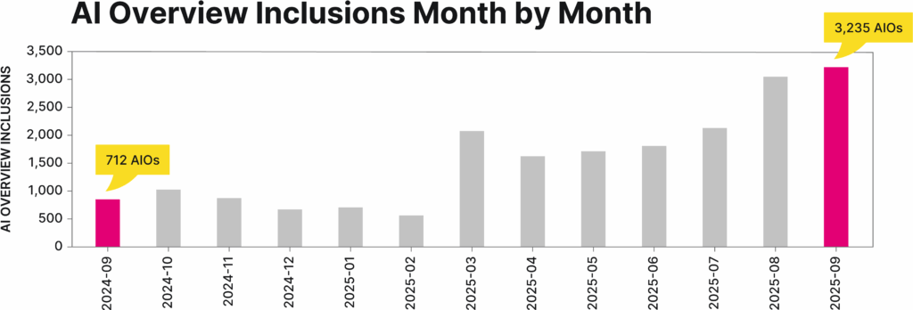 Growth in AI Overview inclusions (712 → 3,235)