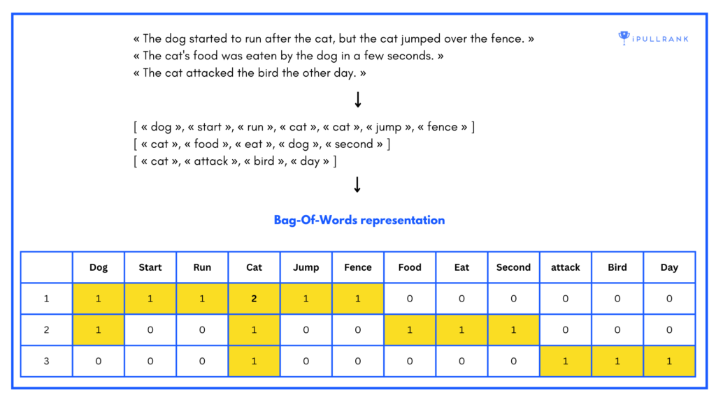 In a web search engine, the bag of words model represents a page as a collection of individual words or “tokens” and their respective frequencies. If some of this language is beginning to sound like things you’re learning about ChatGPT, stay tuned, you’ll see why in a second.