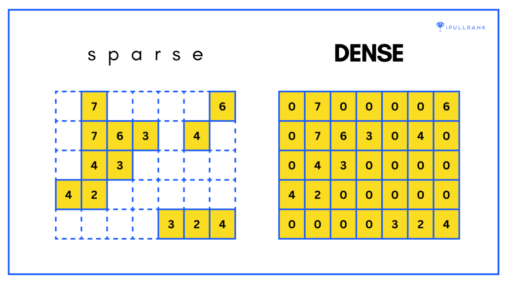 Sparse and dense embeddings are two ways of representing words or sentences as embeddings.