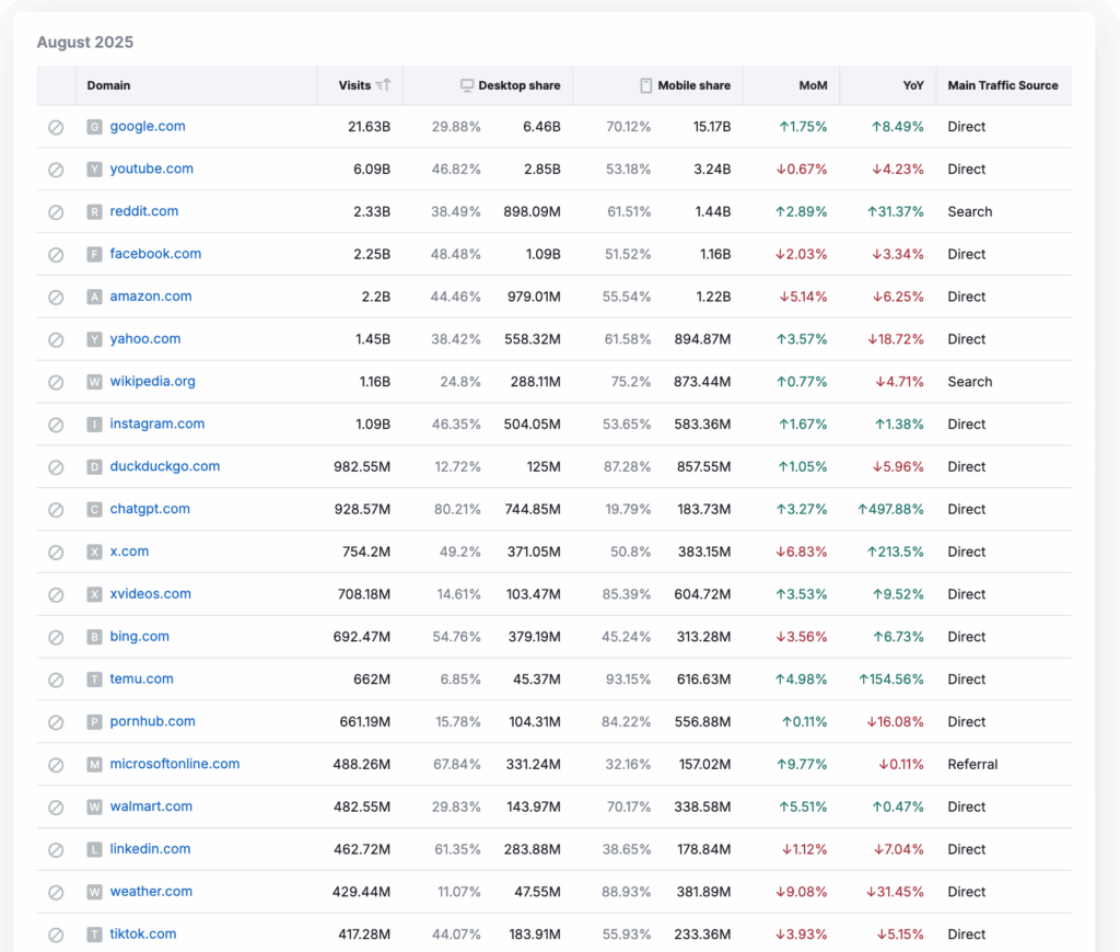 AI Mode is dramatically weaker than traditional search at driving referral traffic. Similarweb’s data backs up what most of us suspected: when Google pushes users into a generative answer box, fewer clicks leave the page. It’s a different mental model for search behavior. Traditional search was already trending toward zero-click behavior. AI Mode accelerates that shift.