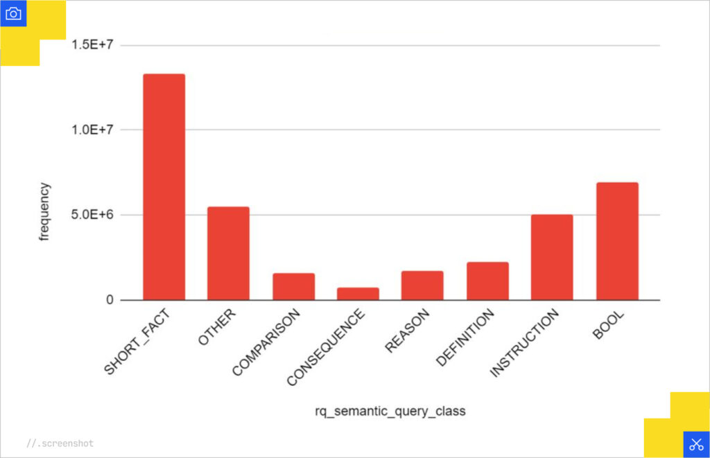 - What is it: Assigning Google’s internal query classifications user intent types (short_fact, reason, et al) to queries using ML and LLMs.