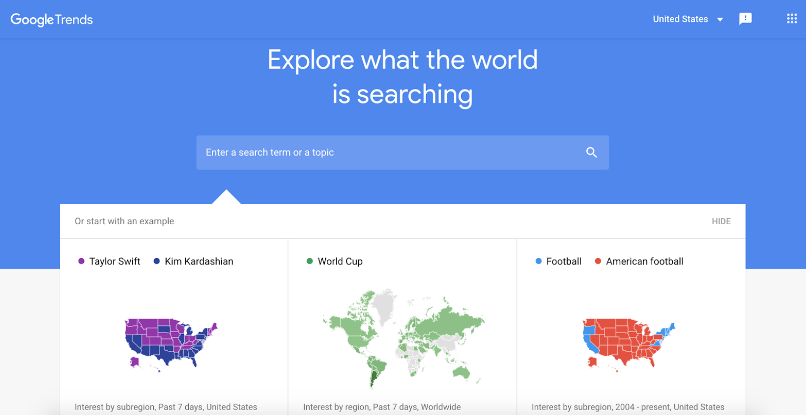 There are many awesome tools to research trending topics. Let’s take Google trends for example, I’m sure we’ve all used this tool before to do some form of preliminary keyword research, just to see what hot topics people are searching for. I’m no Google trends expert, but I do know for a fact that Google trends data can be very insightful for comparing relative popularity of a search query, which in turn, will allow you to better prioritize your content plan in real-time. There are other benefits in utilizing Google trends, but it is definitely a tool that I would recommend you look into if you’re doing keyword research for trending topics.