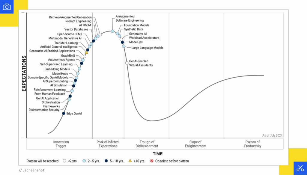 - A prediction that 40% of Generative AI solutions will be multi-modal by 2027 (up from 1% in 2023 – a huge jump)