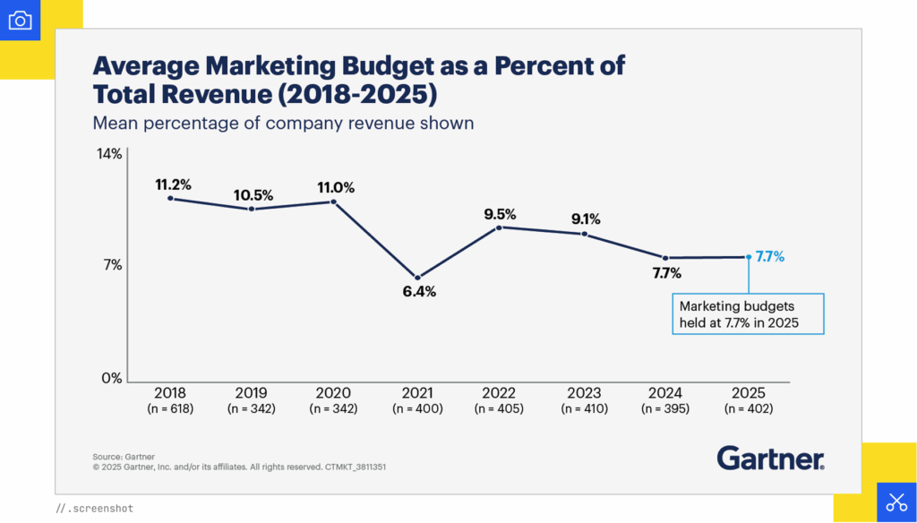 Gartner’s 2025 report, Marketing Budgets: Benchmarks for CMOs in the Era of Less, shows some surprising insights on CMOs’ approach to budgeting.