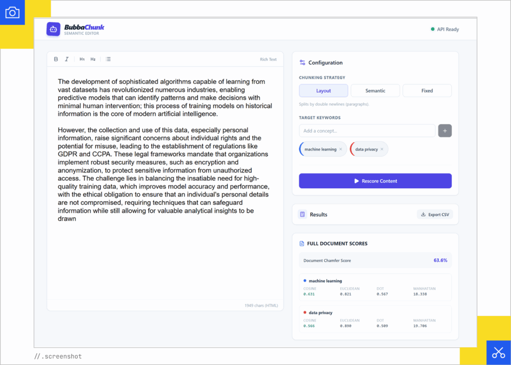 Historically, SEO treats the page as a single context window with no real measurable way to tell if your optimizations really did anything except for the rankings themselves. Sure, the various content optimization tools give you a lexical score, but nothing that aligns with the breadth of modern information retrieval. Chunking offers a direct feedback loop for the isolation and improvement of specific blocks of content and how you can influence how they perform in AI surfaces.