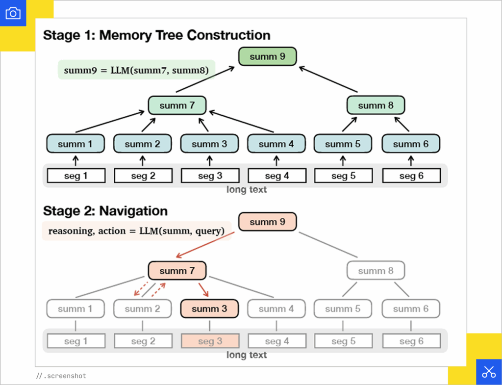 Meta’s MemWalker pushes in the same direction by organizing content into memory trees that can be traversed, revisited, and updated. Structure provides the branches. By defining clear boundaries and semantic anchors, you build a “map” that helps the agent navigate and reconstruct the mental model of your information.