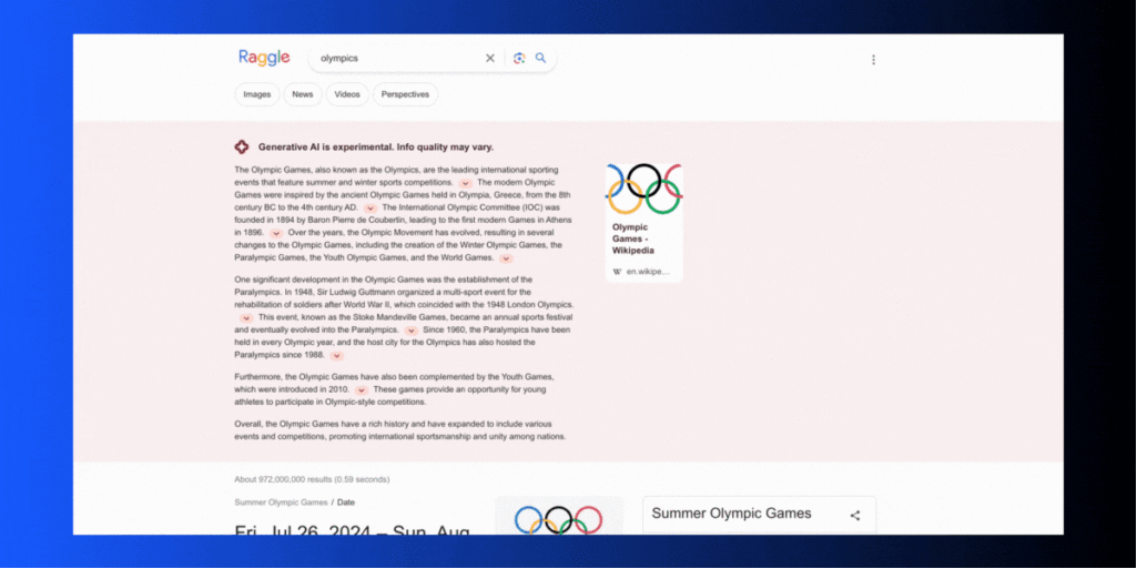 Here’s an example of the chunks identified by the Raggle tool for the keyword Olympics: