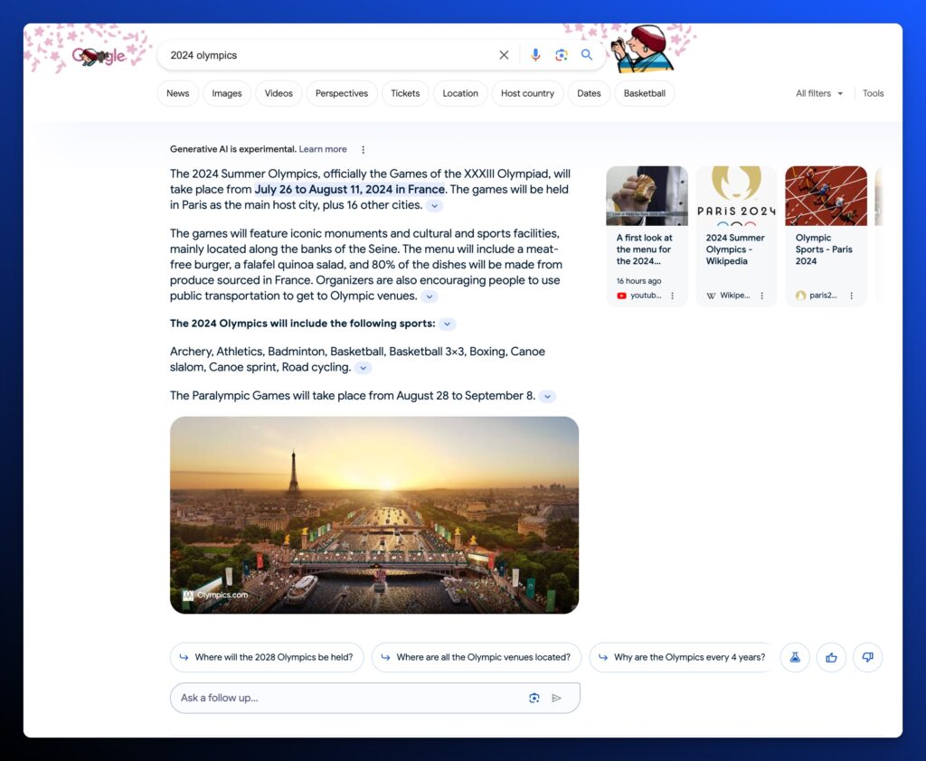 Let’s take an important query that will be relevant to many news outlets over the next 6 months: 2024 Olympics.