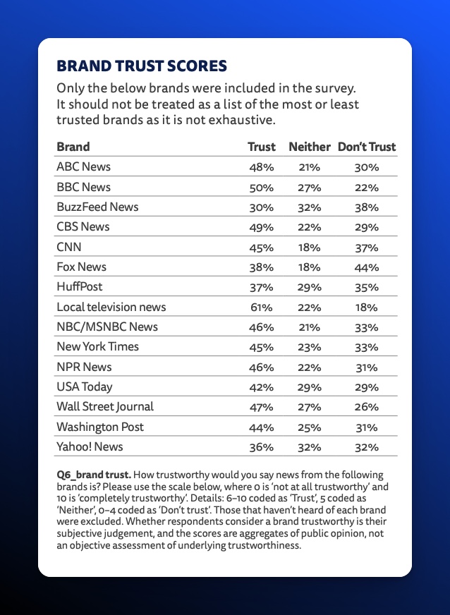 Brand Trust according to Reuter’s Digital News Report 2023