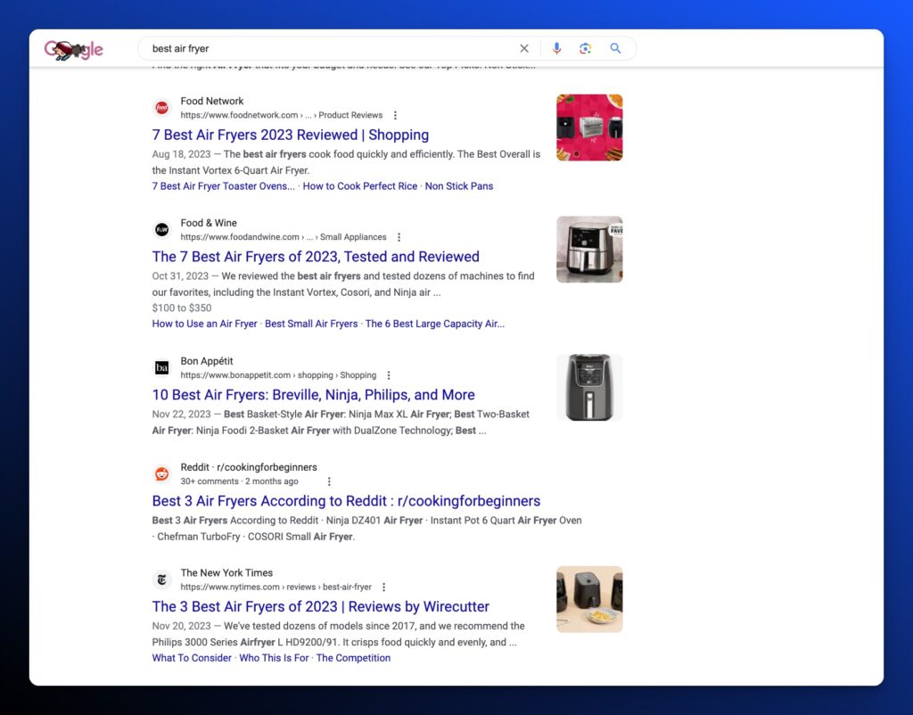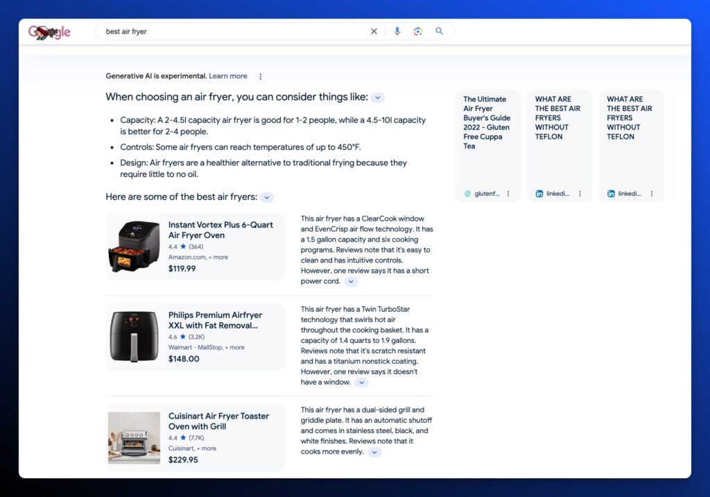 These editorial, in-depth reviews cover thousands of different products and have softened the blow of a decline in ad revenue. But AI Overviews will likely land a decisive blow on organic traffic to these product reviews. At least, that’s what much of the SEO industry is afraid of.