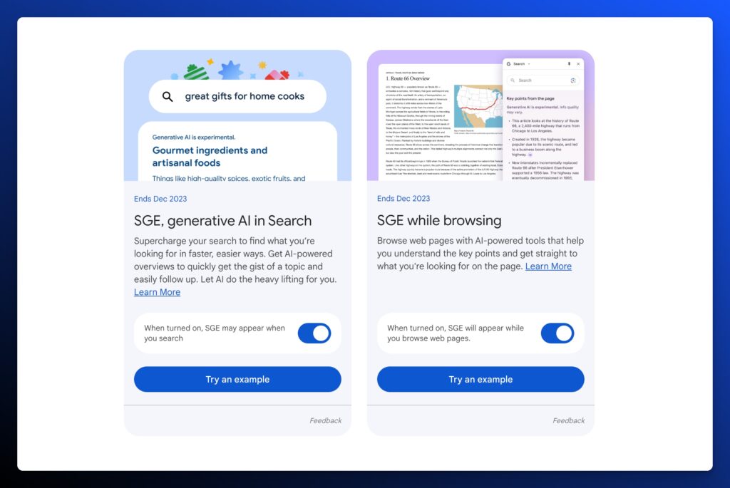 According to Srinivasan Venkatachary, VP of Engineering and AI Product Expansion at Google, via a 16-page internal document of the product (updated in October), the AI Overview is “an early step in transforming the Search experience with generative AI. When using [SGE], people will notice their search results page with familiar web results, organized in a new way to help them get more from a single search.”