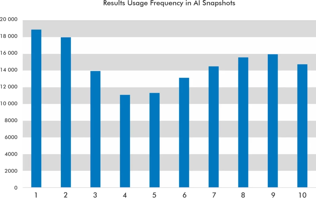 - 9.48% of the time, it does not use any of the top 10 results in the AI snapshot.