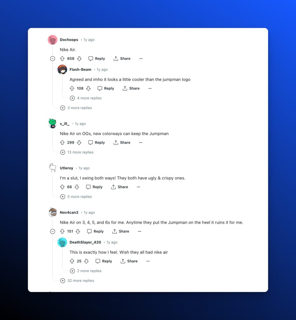So let’s say I have a shoe brand and I see a range of threads popping up on my keywords in the r/Sneakers subreddit.