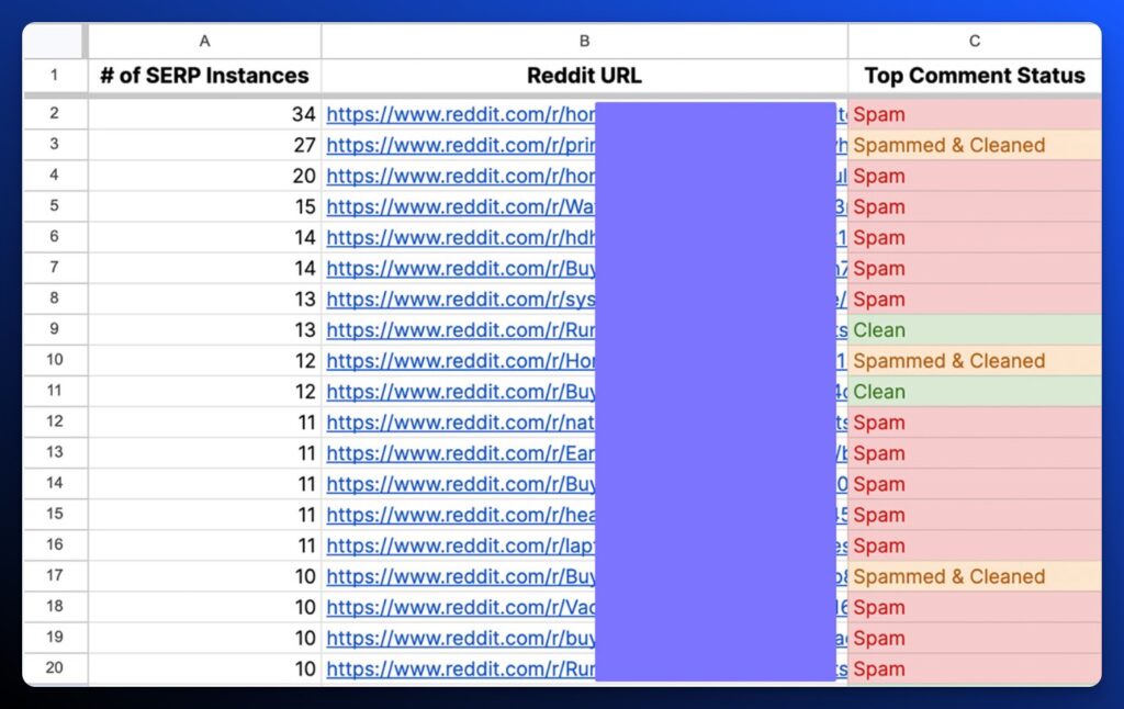 One caveat, it’s pretty obvious to Redittors that when you comment on a threads published more than 3 months ago, it’s not organic or authentic. That’s why you want to record the thread date when you’re documenting opportunities to participate.