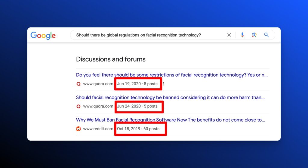 Unsurprisingly, Reddit threads tend to show up at the top of this filter: