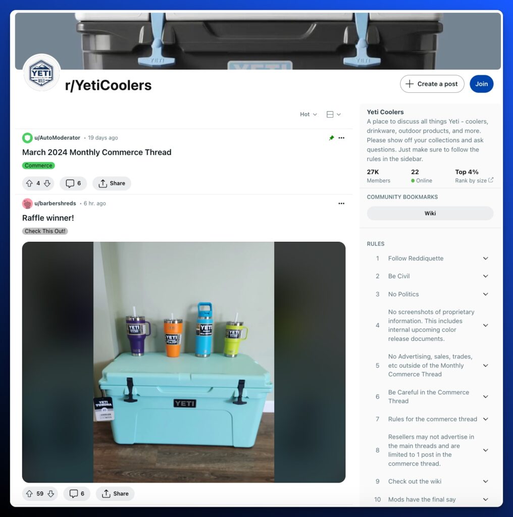- Subreddit: r/YetiCoolers