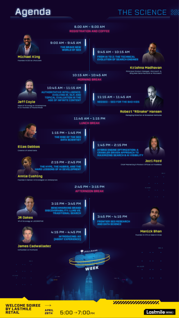 The best news I have to share today is that we’ll be back in 2026 – bigger, smarter, and even more future-focused. The inaugural SEO Week was such a resounding success that the iPullRank team decided mid-way through the conference that we’re definitely making this an annual event!