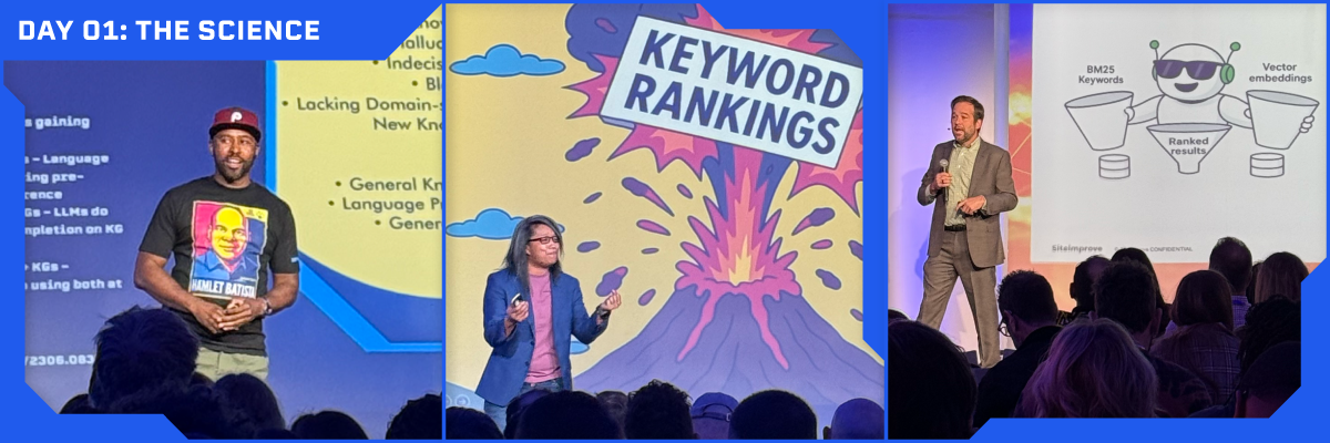In rapid succession, Microsoft’s Krishna Madhavan explored advancements from AI to quantum computing and their impact on information retrieval. Jeff Coyle discussed the shift from keyword-centric strategies to semantic understanding through vector search and AI-enhanced ranking methods.