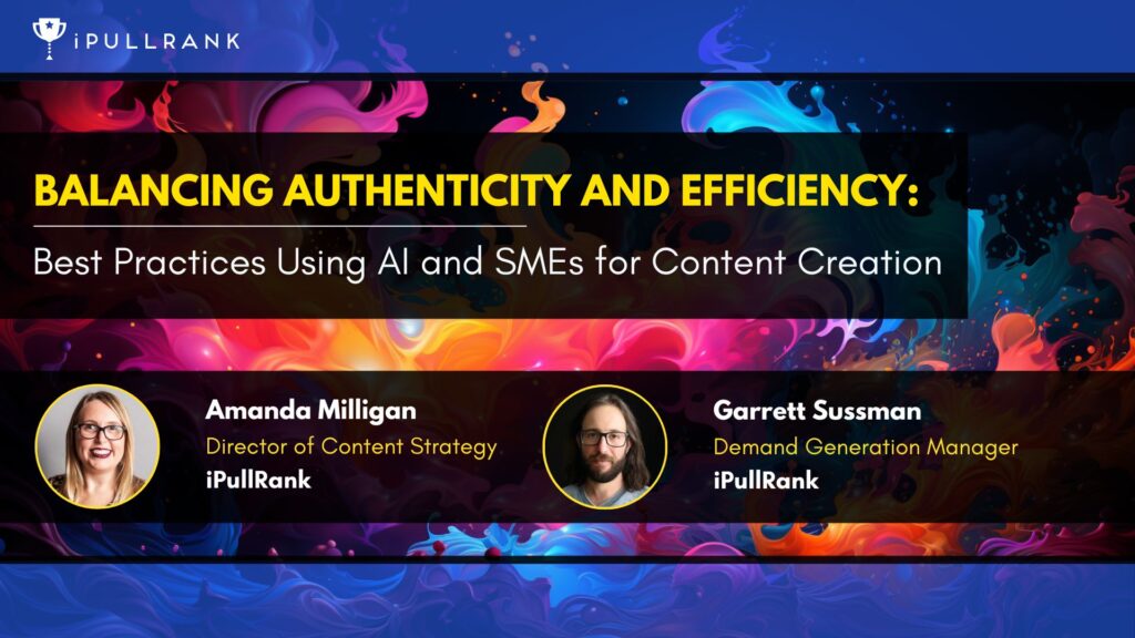 In this webinar replay, Amanda Milligan and Garrett Sussman explored the practical aspects of merging human expertise with the capabilities of artificial intelligence in content creation. As we look forward to 2024, let’s discuss the best ways to use both subject matter experts (SMEs) and generative AI in your content strategy.