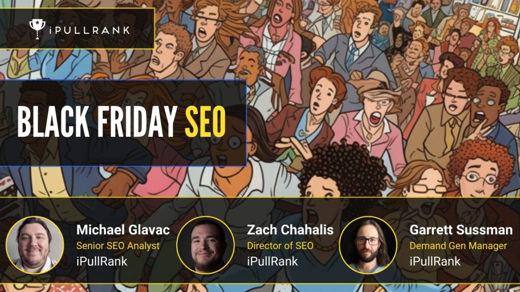In this webinar, Zach Chahalis and Garrett Sussman of iPullRank cover a step-by-step walkthrough of the actions you need to be taking to prepare your business for Black Friday.