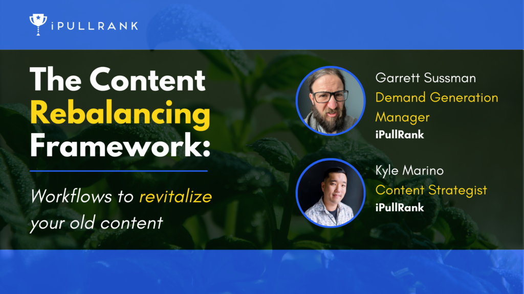 In this webinar, Garrett Sussman and Kyle Marino of iPullRank map out why you should revisit your content by topic cluster and redistribute the link equity and improve your content to enhance its strength and authority.