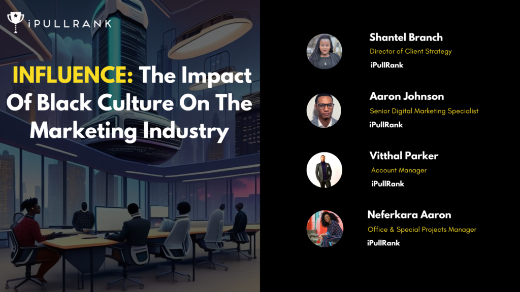iPullRank’s Aaron Johnson, Shantel Branch, Vitthal Parker, and Neferkara Aaron explore how the black community has contributed to and reshaped the marketing and advertising industry.