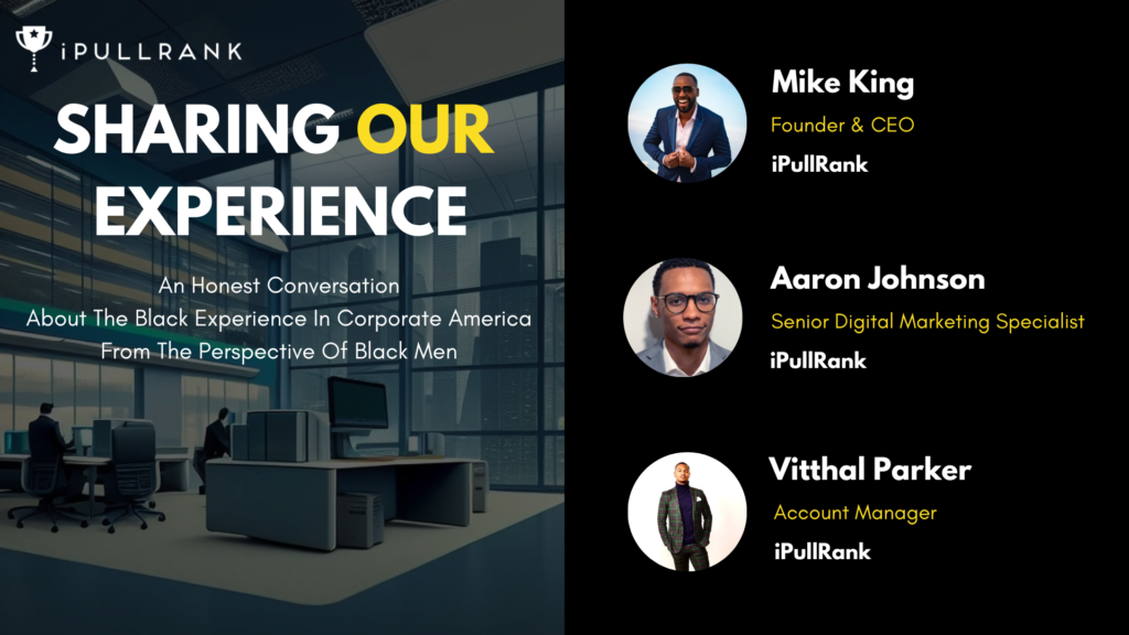 iPullRank’s, Mike King, Vitthal Parker and Aaron Johnson have an open discussion around their experience as black men throughout their careers in Corporate America.