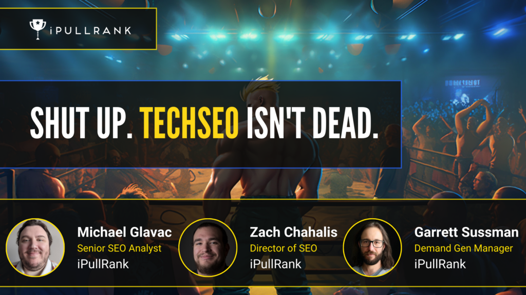 In this fireside chat, Zach Chahalis, Michael Glavac, and Garrett Sussman walk us through why TechSEO is absolutely not dead. They discuss key insights and skills they’ve picked up throughout their careers and what the future of TechSEO will look like.