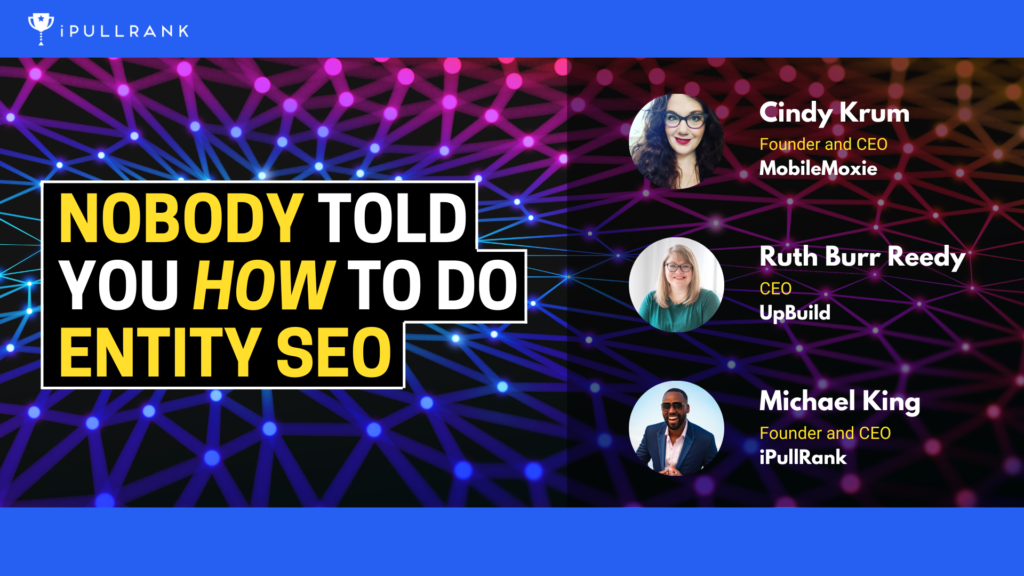 In this webinar, Cindy Krum of MobileMoxie, Ruth Burr Reedy of Upbuild, and Michael King of iPullRank break down how Entity SEO works, what you need to know to effectively build content that supports it, and how you can use structured data to effectively establish your entities across your website.