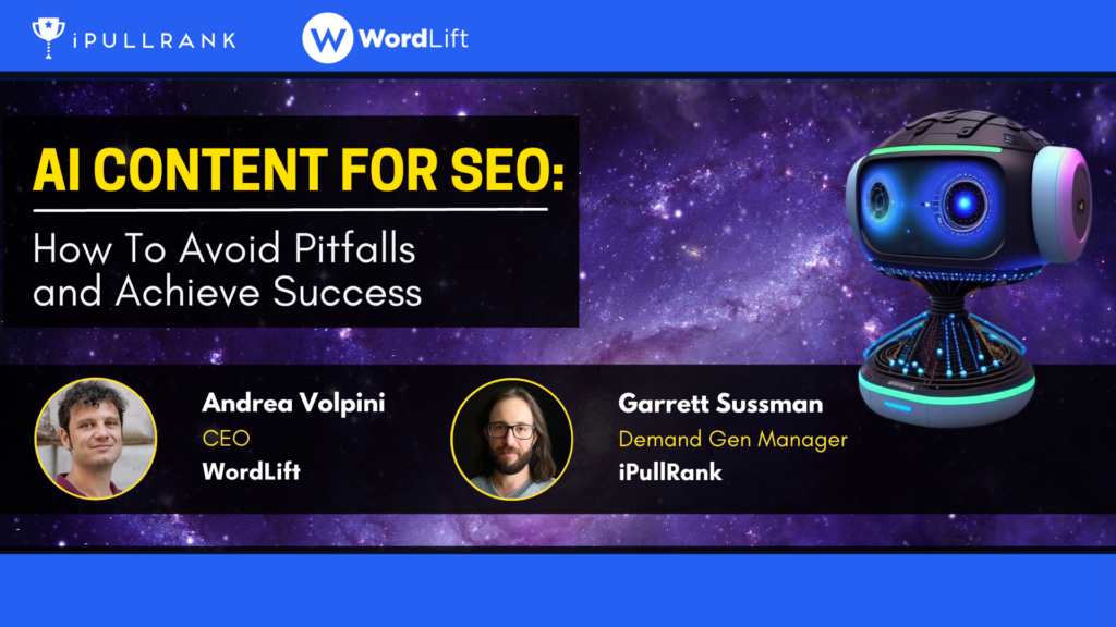 In this webinar replay, Andrea Volpini of WordLift and Garrett Sussman of iPullRank deliver an engaging presentation on how you can use AI to effectively classify your website with the structured data that Google (and LLM) wants to see.